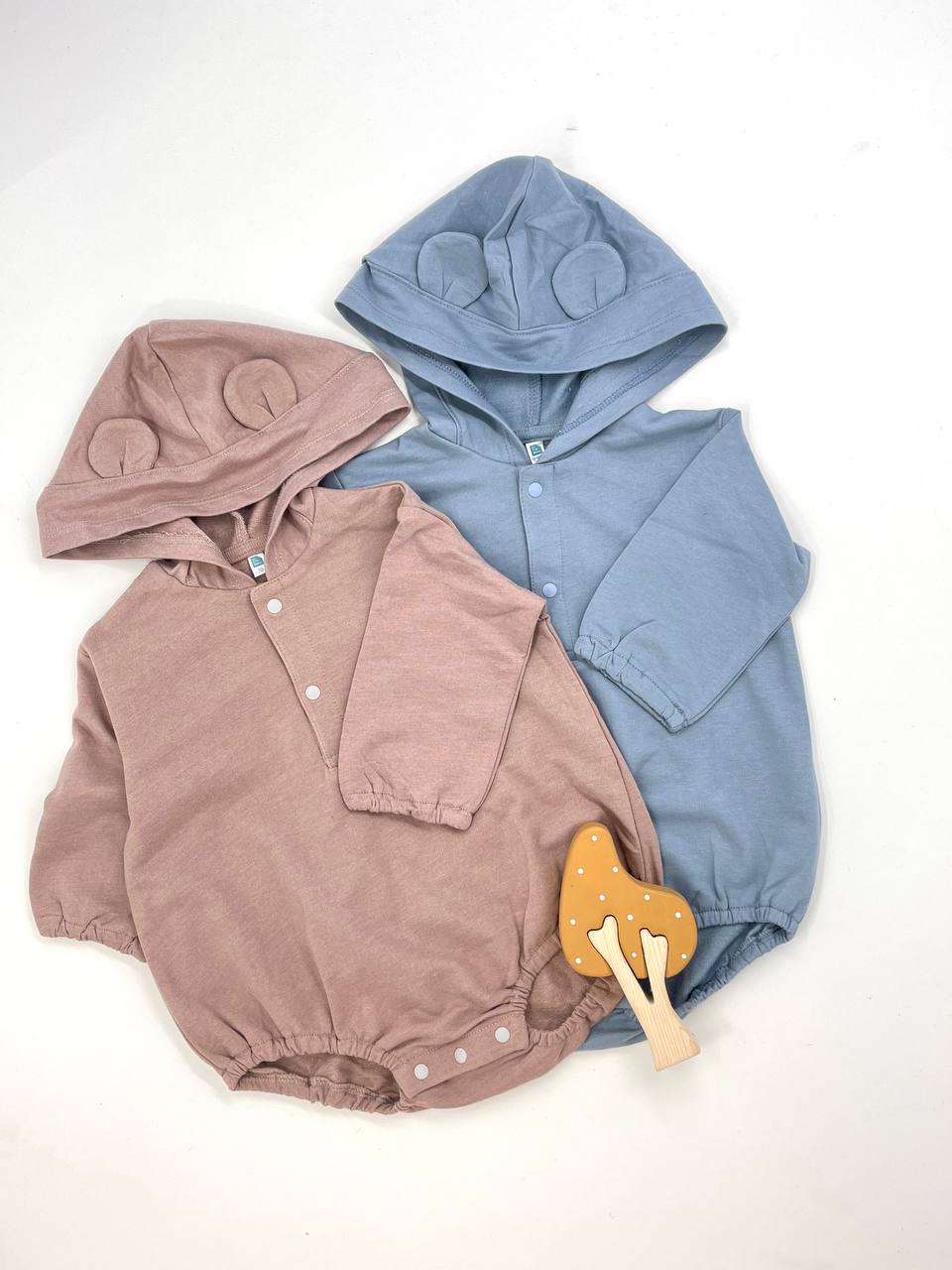 👕 بادی گرم و نرم، با طراحی کلاهدار برای فصول سرد، در دو رنگ جذاب آبی و صورتی. 💙💖